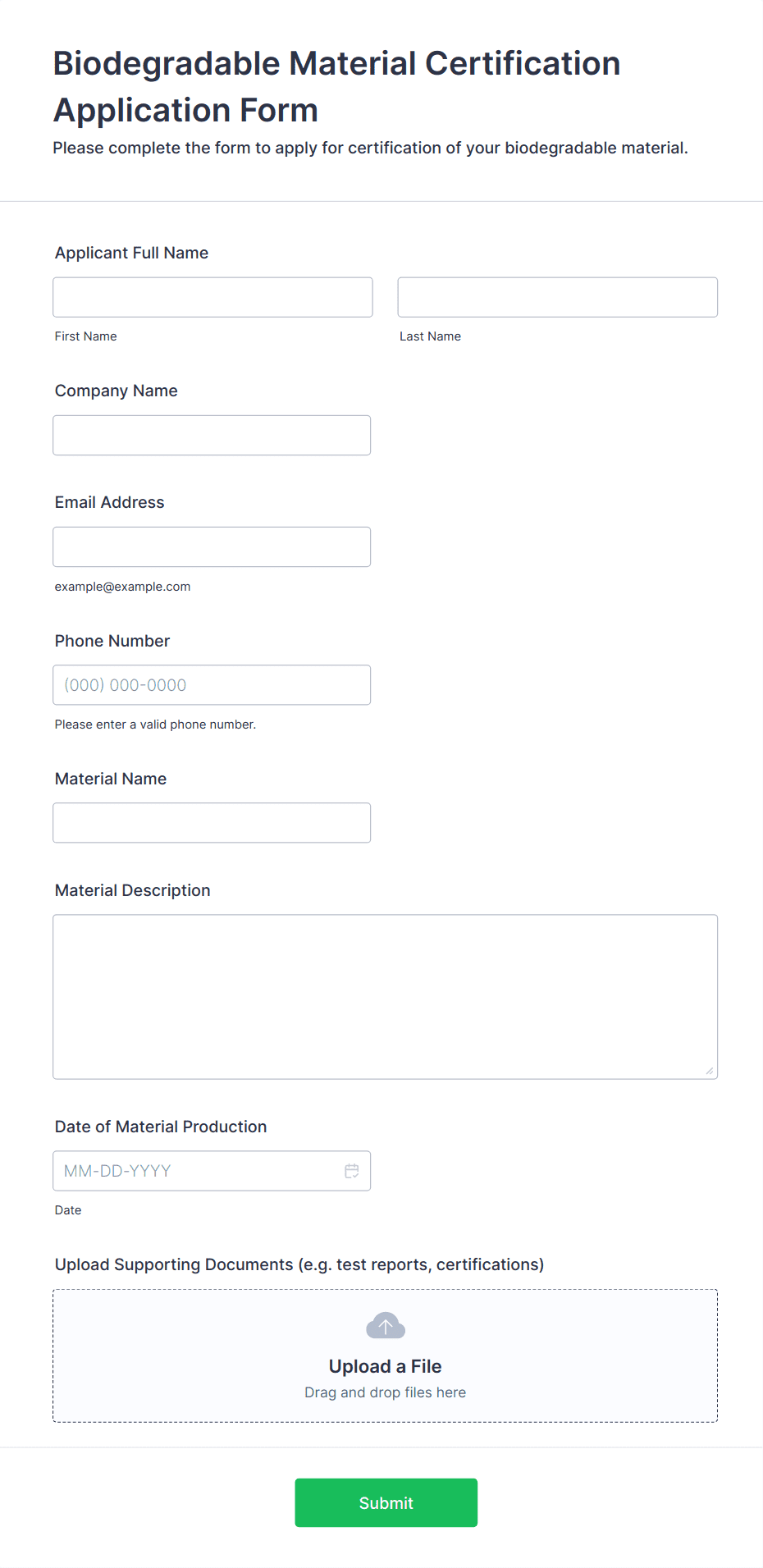 • For job applications, include fields for personal information, education, work experience, references, and file uploads for resumes or cover letters.