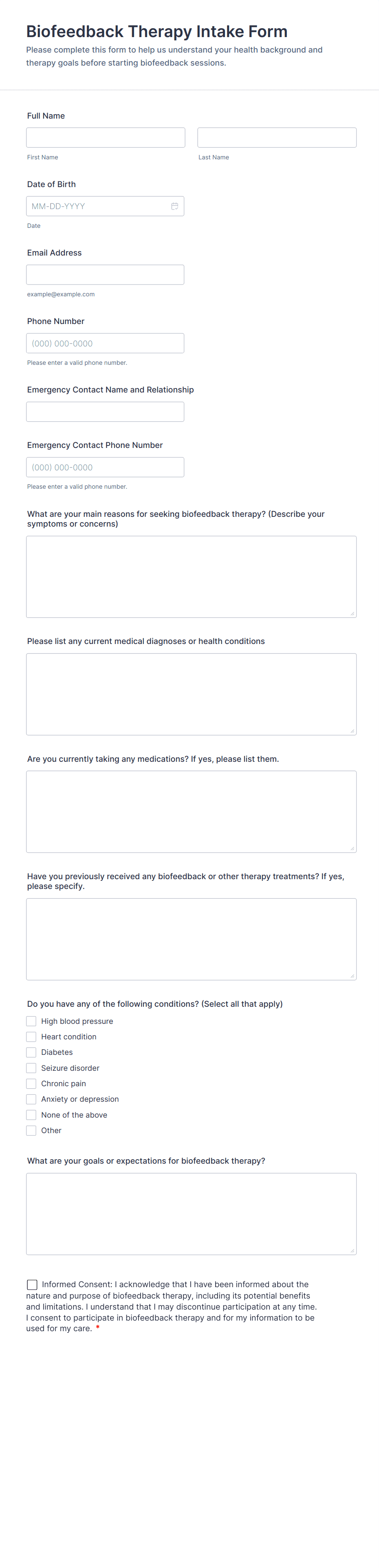 Intake forms are used by healthcare providers, legal professionals, educators, HR departments, consultants, and service-based businesses.