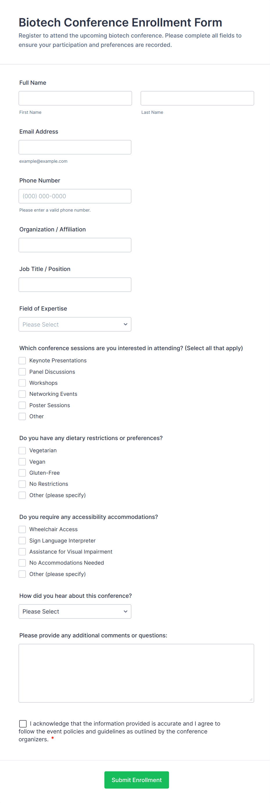 By following these steps, you can create a tailored Conference Registration Form that streamlines the sign-up process, ensures accurate data collection, and enhances the overall experience for both organizers and attendees.