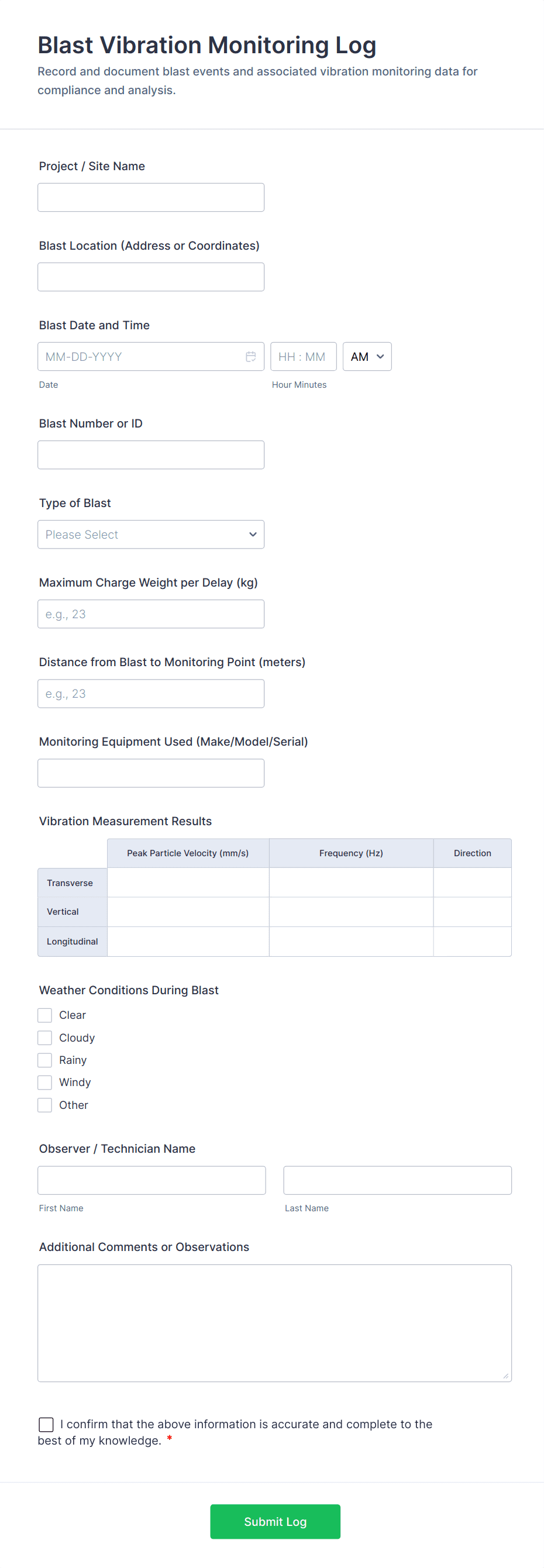 - Environmental Monitoring Forms: Include data entry for measurements, location fields, and observation notes.