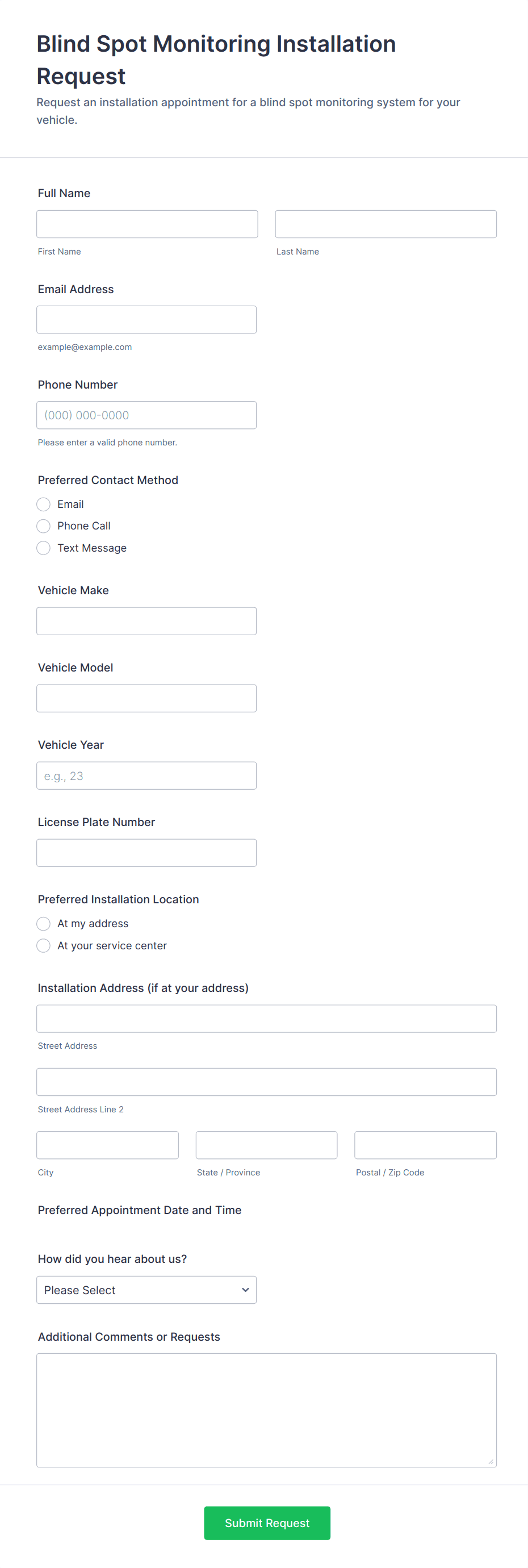 Vehicle Service Request Form