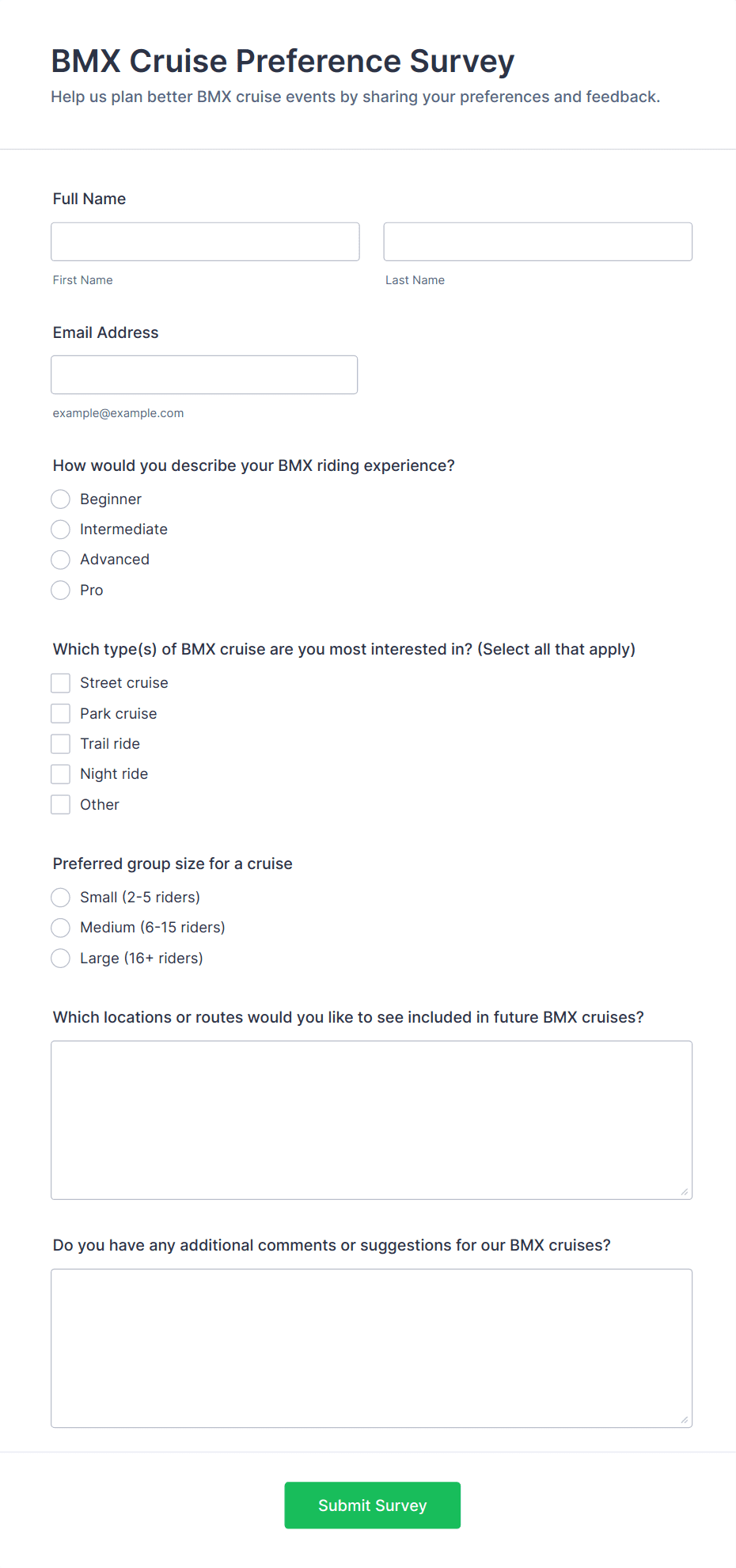 Survey templates are pre-designed forms that help individuals and organizations collect feedback, opinions, or data from a target audience. These templates are widely used for a variety of purposes, such as customer satisfaction surveys, employee engagement assessments, market research, event feedback, and academic studies. By providing a structured set of questions, survey templates streamline the process of gathering valuable insights, making it easier to analyze trends, measure satisfaction, and make informed decisions. Whether you’re a business owner, HR professional, educator, or researcher, survey templates offer a quick and effective way to reach your audience and collect actionable information.