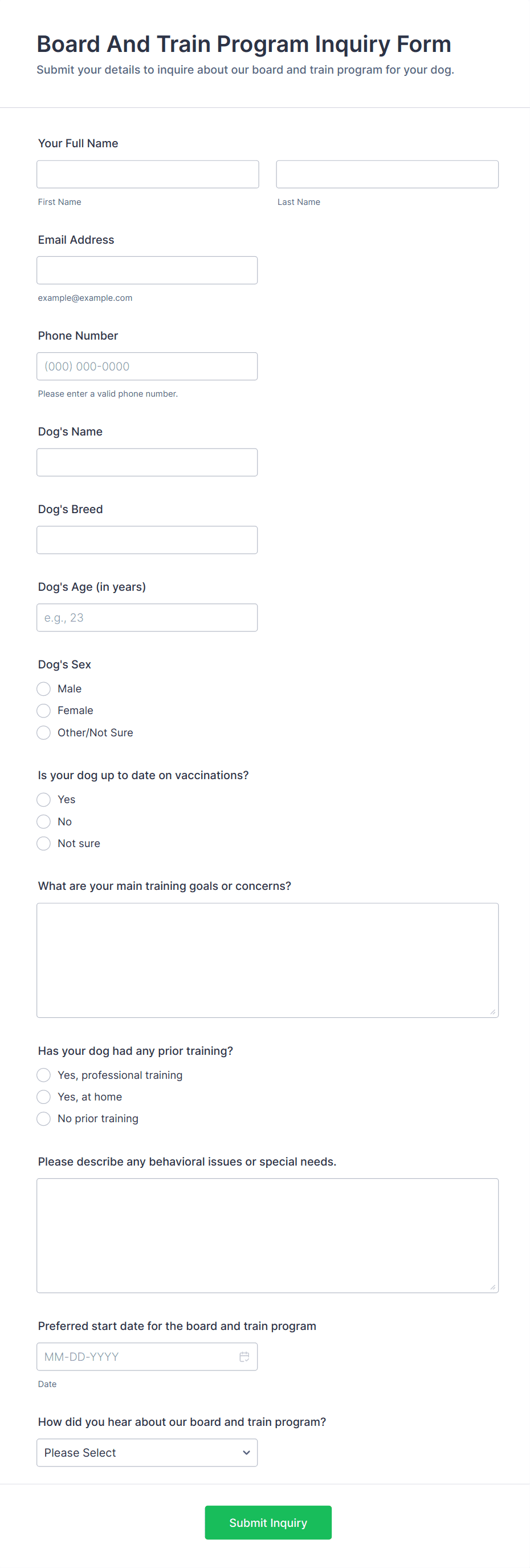 3. What information should be included in an inquiry form?
