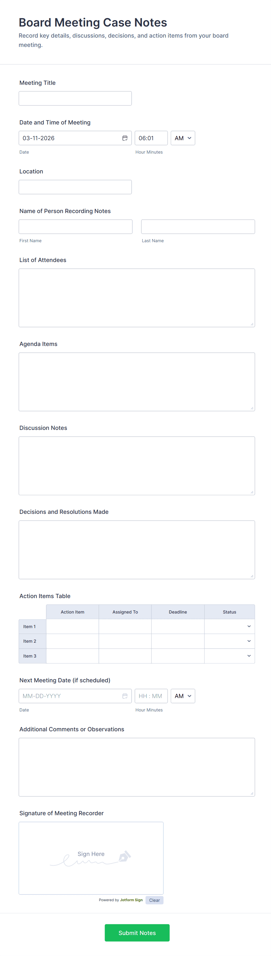 Move your meetings online with free Meeting Forms from Jotform. Whether you want to schedule a meeting, check meeting attendance, collect signups, plan itineraries, or otherwise, our ready-made form templates can get you started in no time. Simply pick a template that works for you and customize it with our intuitive online builder.