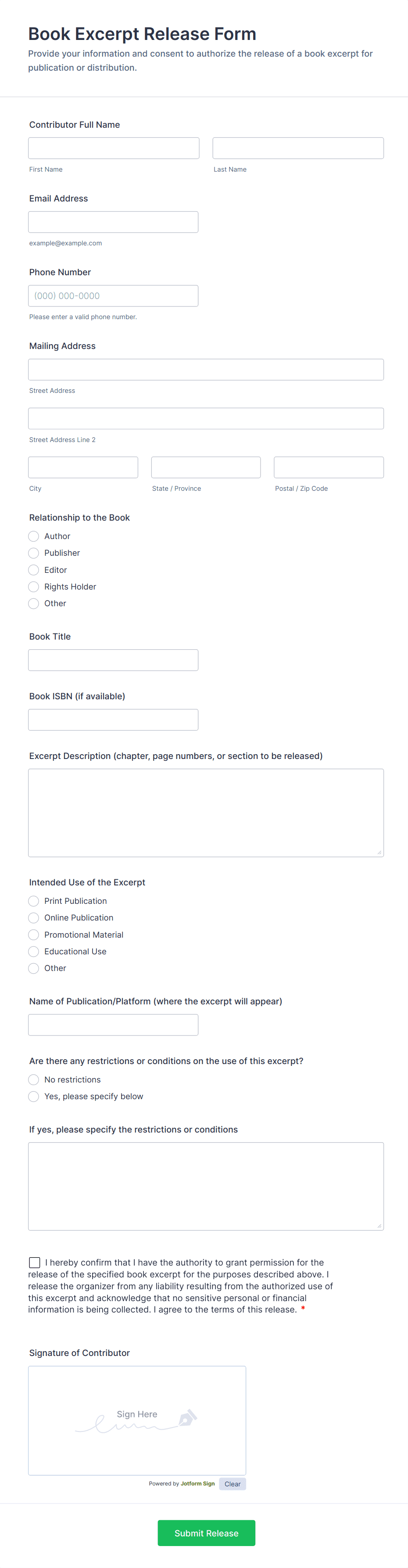 Creating a release form template with Jotform is a straightforward process that can be tailored to fit any use case, whether you need a photo release, liability waiver, or medical information release. Here’s a step-by-step guide to help you design, customize, and manage your release forms efficiently: