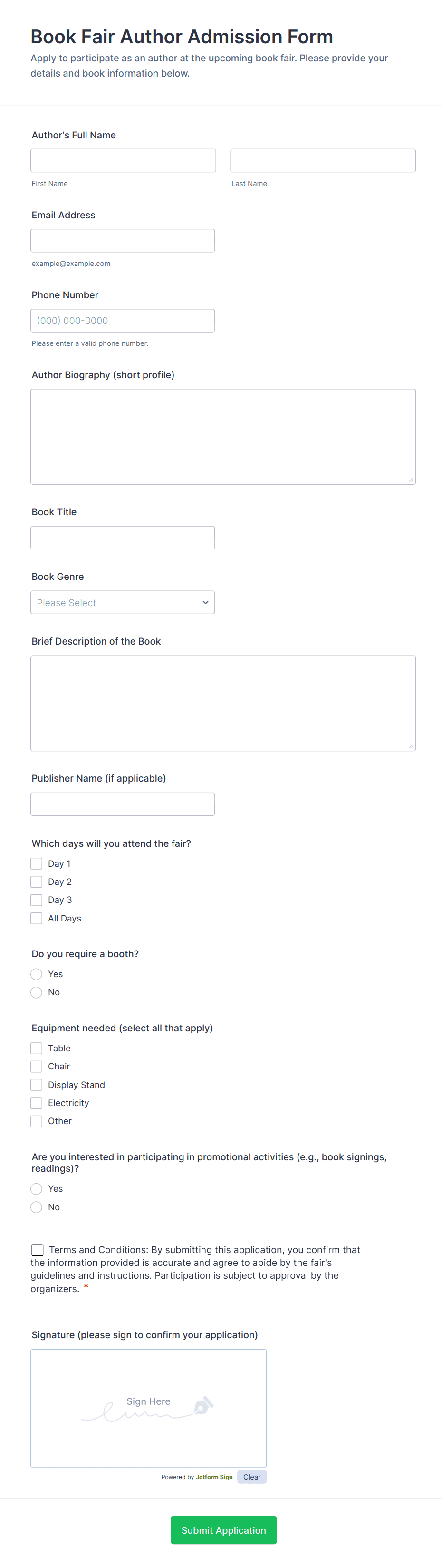 An Arts and Craft Fair Application Form is a form template designed to streamline the application process for artists, crafters, and vendors interested in participating in an arts and craft fair.