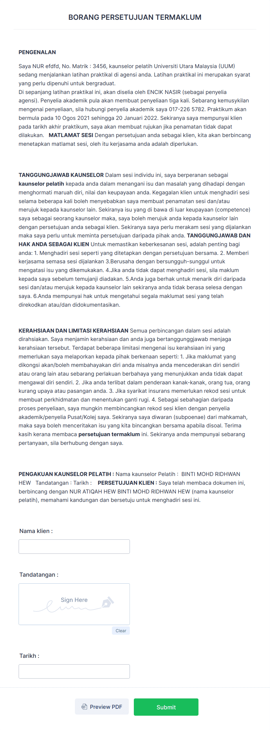 Consent forms are essential documents used to obtain explicit permission from individuals before engaging in activities that may involve personal data collection, medical procedures, research participation, photography, or other sensitive actions. These forms serve as a legal and ethical safeguard, ensuring that participants are fully informed about what they are agreeing to and that their rights are protected. Consent forms are widely used in healthcare, education, research, event management, and business settings, where transparency and compliance with regulations such as GDPR or HIPAA are critical.