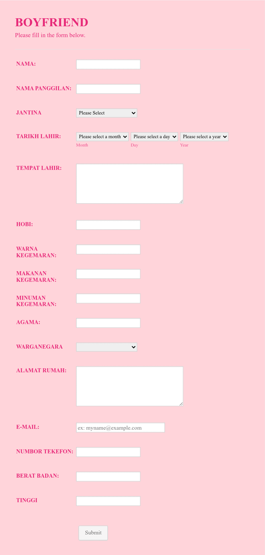 College Admission Form