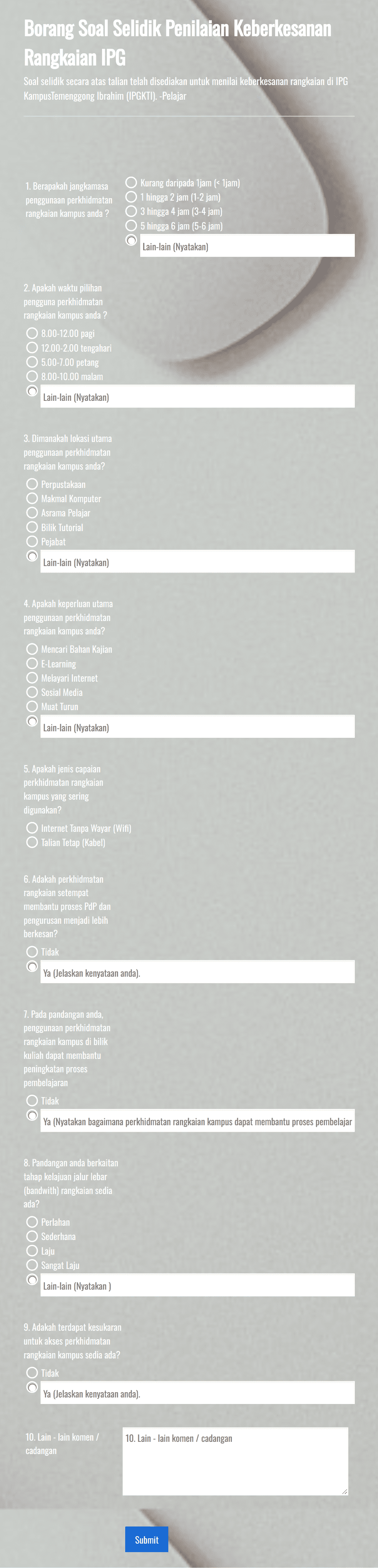 An education form template is a pre-designed online form tailored for academic purposes, such as student registration, feedback collection, event sign-ups, and more. These templates help schools and educators collect and manage information efficiently.