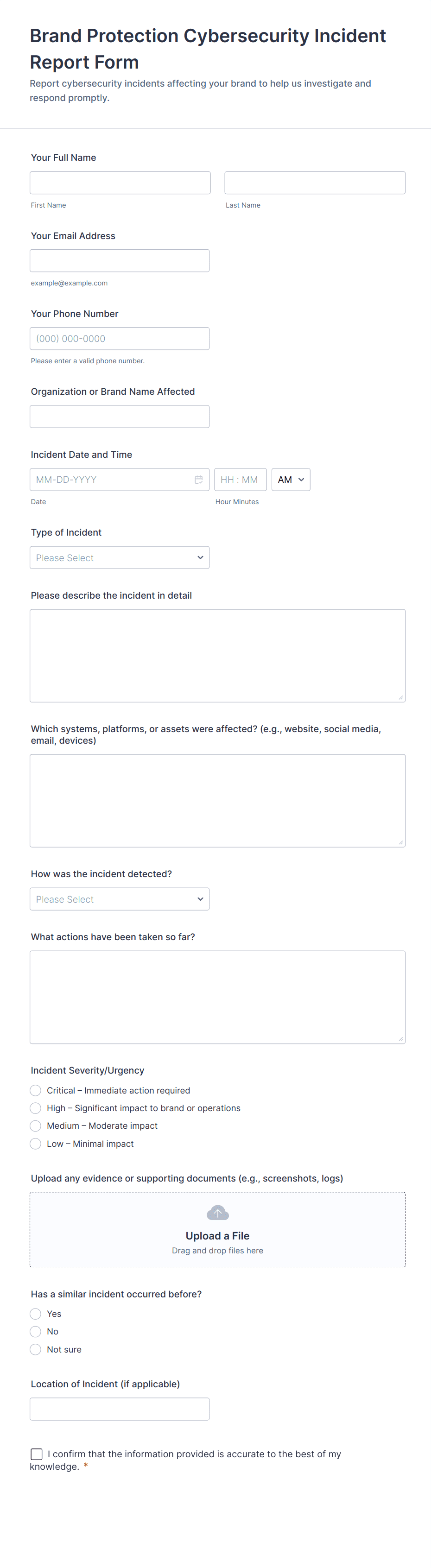 An IT Incident Report Form is a form template designed to streamline the reporting and resolution process of IT-related incidents for businesses.