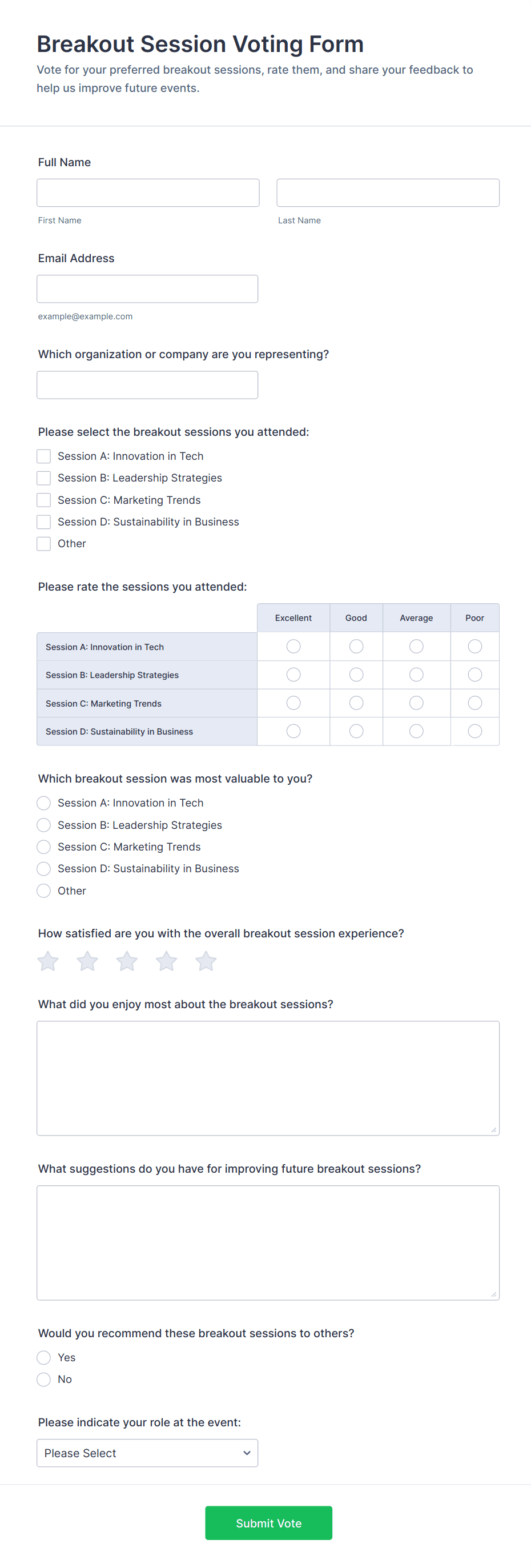 Voting forms are used by schools, businesses, clubs, nonprofits, event organizers, and any group needing to make collective decisions or gather opinions.