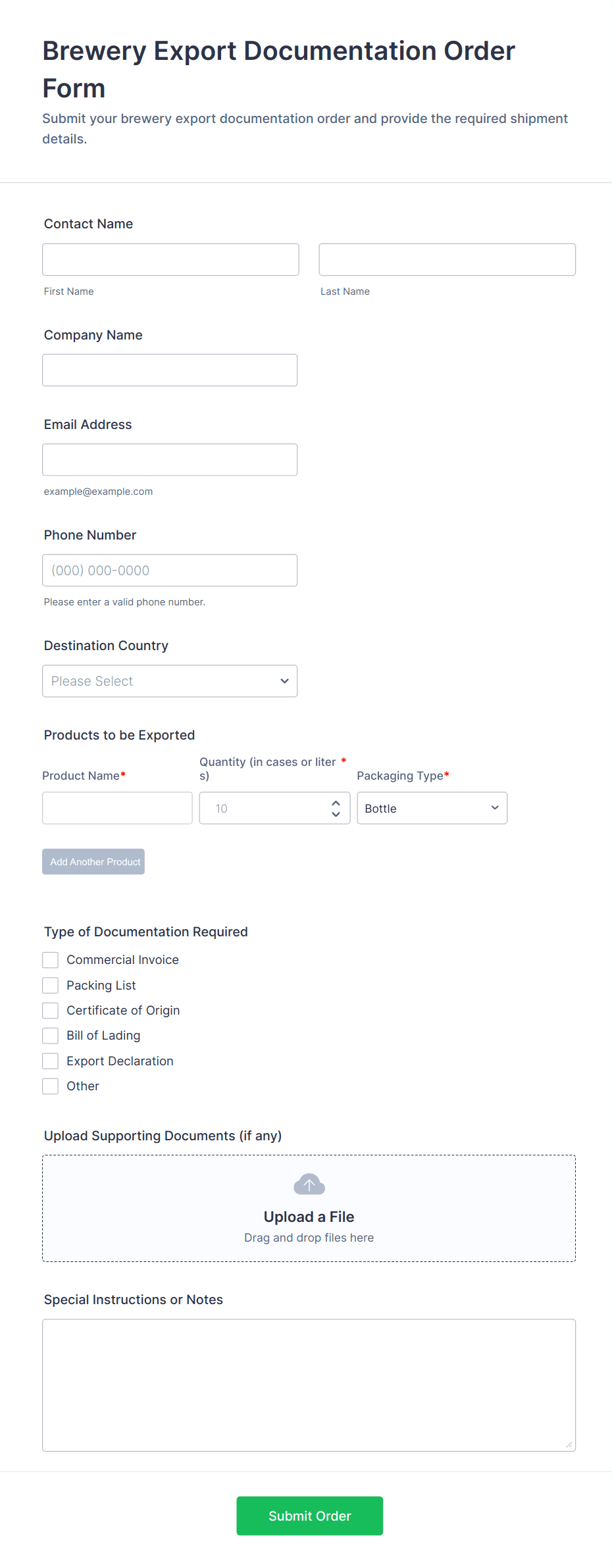 Product order forms are essential tools for businesses and organizations that need to collect orders for physical or digital products online. These forms streamline the process of gathering customer information, product selections, quantities, payment details, and shipping addresses, making it easy to manage sales and inventory. Product order forms can be used in a variety of scenarios, such as e-commerce websites, small businesses selling handmade goods, restaurants offering online ordering, event merchandise sales, or even non-profits collecting orders for fundraising items. Their flexibility allows them to be tailored for single-product checkouts, multi-item catalogs, pre-orders, or subscription-based offerings.