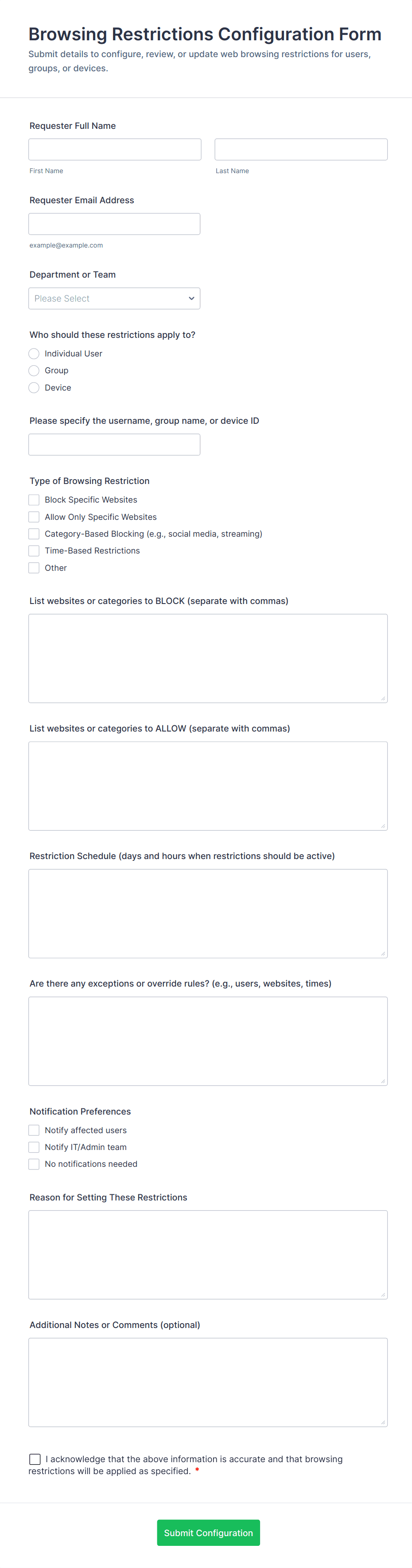 Collect and review employee access requests with the Authorized User Access Request Form, helping IT and managers approve system permissions, track time-bound access, and keep data collection organized in Jotform.