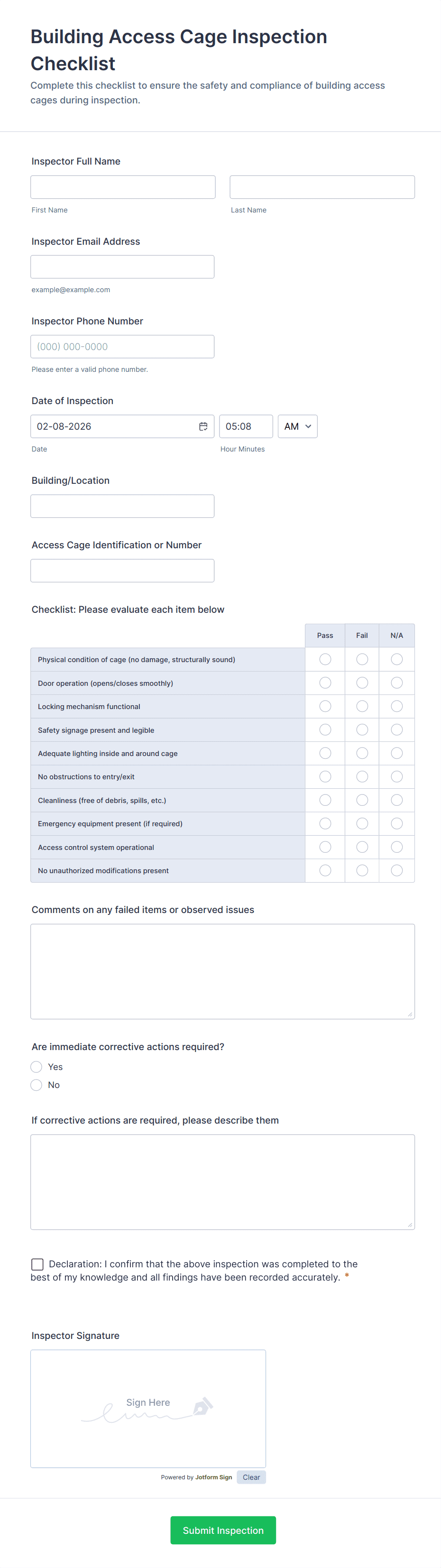 Document routine access-point inspections with the Gate Control Checklist Form, helping facilities and security teams standardize data collection, track issues over time, and keep every form submission organized in Jotform.