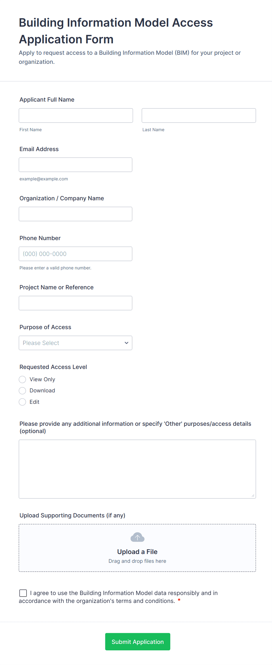 Infrastructure forms are structured documents used to request, track, and document infrastructure work such as IT infrastructure changes, facility upgrades, network setup, and operational improvements. They help teams collect consistent details about infrastructure needs, scope, timelines, risk, approvals, and implementation steps so changes can be planned and executed safely. Infrastructure forms are commonly used by IT teams, facilities departments, operations teams, and project managers for requests like network provisioning, server changes, hardware installation, building utilities maintenance, and site readiness planning. By standardizing infrastructure workflows, these forms reduce miscommunication, improve accountability, and create clear records for audits and follow-up.