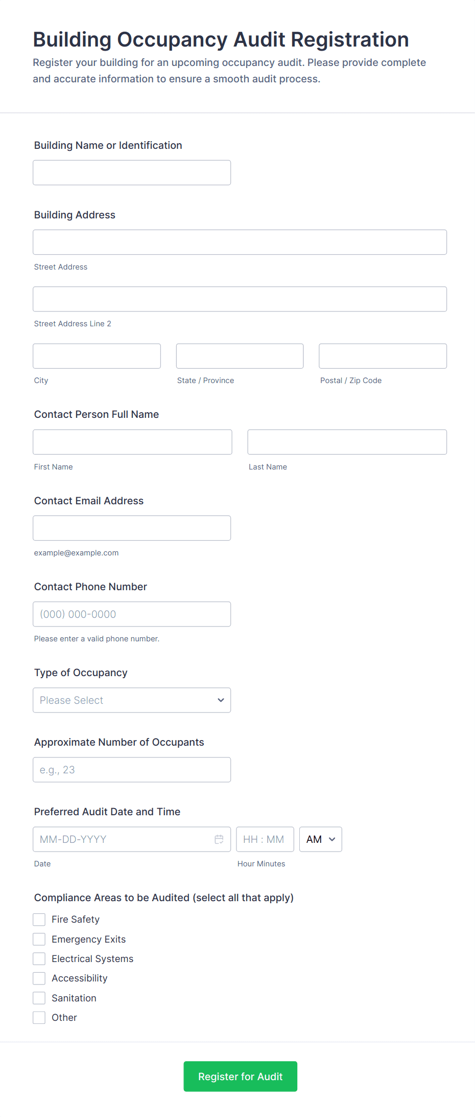 Audit forms are used by safety officers, quality managers, compliance teams, auditors, facility managers, HR professionals, and other stakeholders responsible for oversight and evaluation.