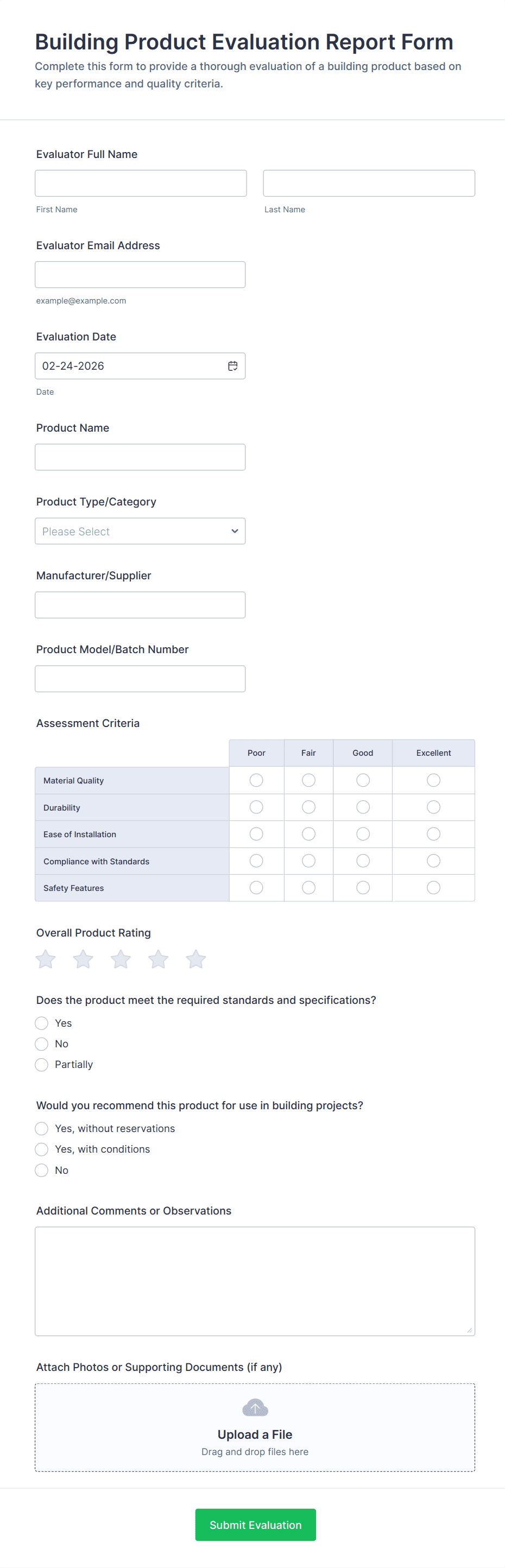 Monitor construction workers with this free, online evaluation form. Easy to customize and complete on any device. Download, print, and share reviews. No coding.