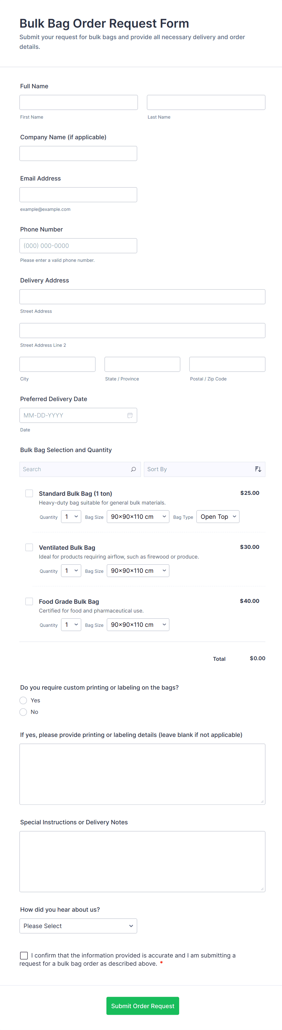 • Event Supplies: May ask for event dates, delivery locations, and special instructions.