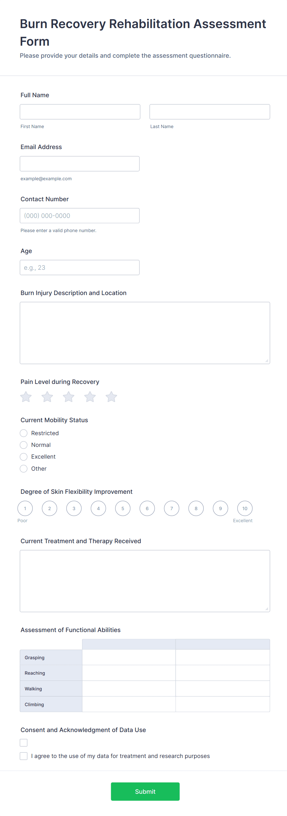Healthcare assessment forms are structured documents used to collect and evaluate patient health information to support clinical decisions, care planning, and ongoing monitoring. They help healthcare teams capture consistent details about symptoms, medical history, risk factors, functional status, and care needs in a clear and organized way. Healthcare assessment forms are commonly used in clinics, hospitals, telehealth services, rehabilitation centers, home care, and specialty practices for intake assessments, screening evaluations, follow-up check-ins, and condition monitoring. By standardizing assessment workflows, these forms improve documentation quality, reduce missing information, and support safer, more coordinated care.