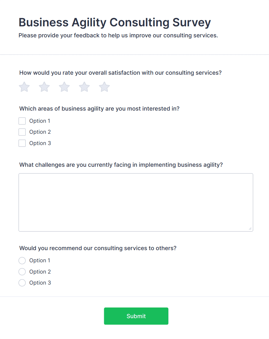 Business surveys are essential tools for organizations seeking to gather actionable insights, measure performance, and drive informed decision-making. These surveys can cover a wide range of topics, including customer satisfaction, employee engagement, market research, product feedback, and internal process evaluations. By systematically collecting feedback from customers, employees, partners, or stakeholders, businesses can identify strengths, uncover areas for improvement, and adapt strategies to meet evolving needs. Whether you’re a small business owner, HR manager, marketing professional, or executive, business surveys help you stay connected to your audience and make data-driven choices that foster growth and efficiency.