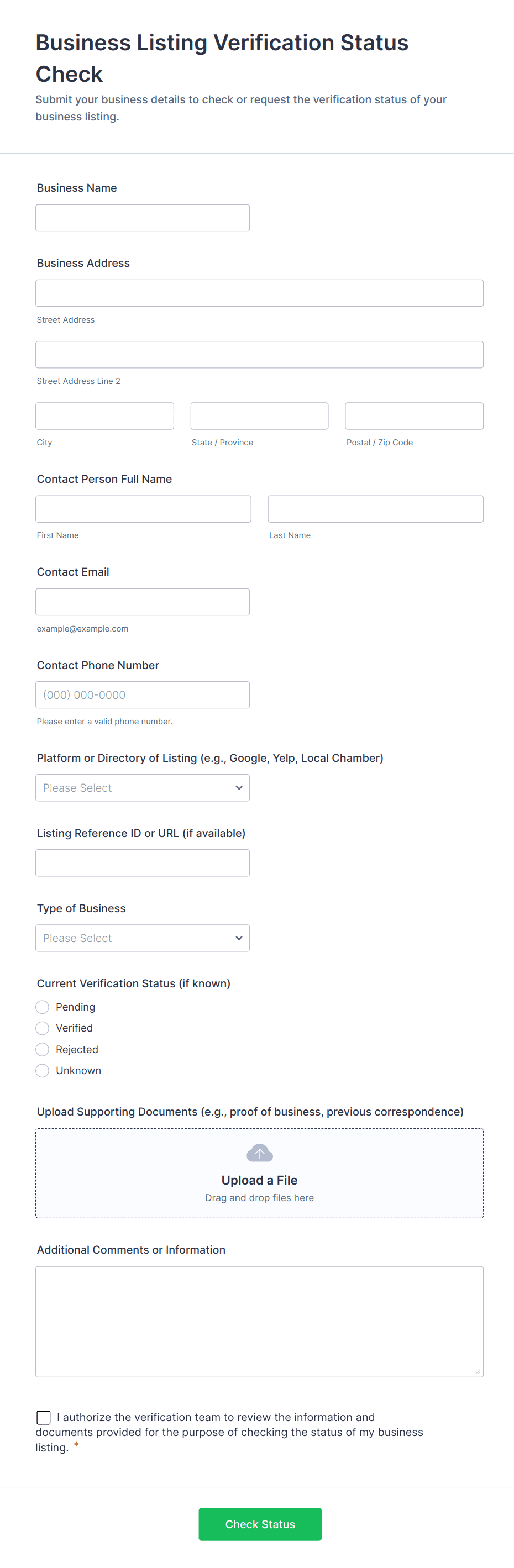 - Use dropdowns or multiple-choice fields to specify the type of verification (e.g., identity, employment, address).