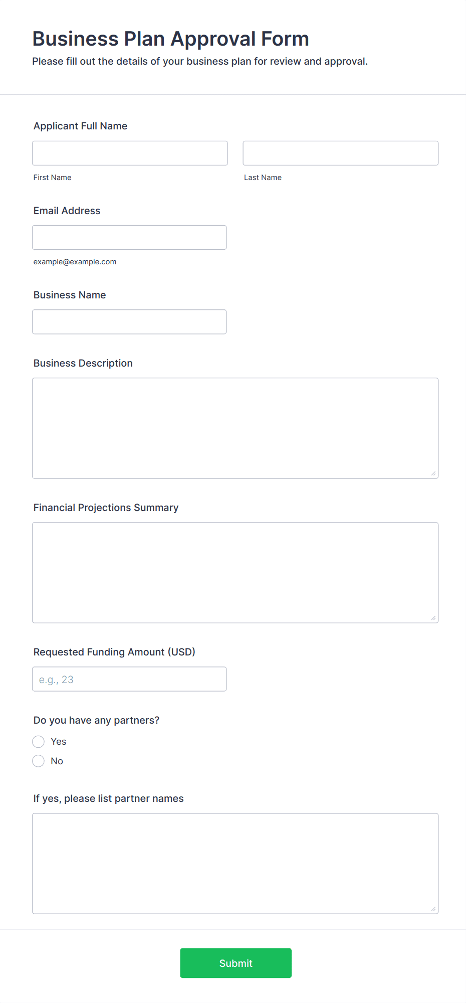 A business form template is a pre-designed digital form used to collect, process, and manage information for various business operations, such as client intake, employee onboarding, or order processing.