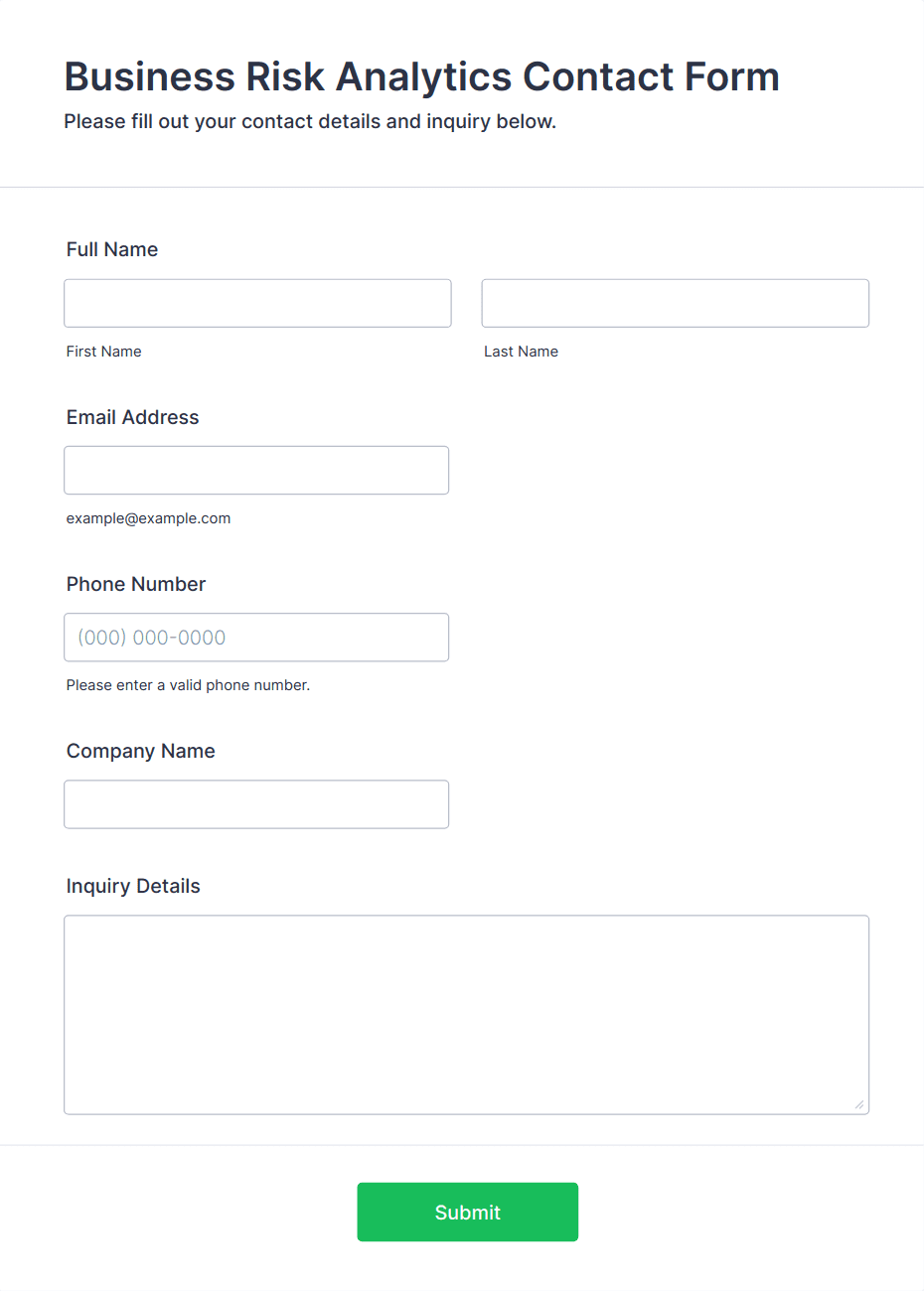 • Sales or quote request forms could ask for company details, budget, and specific service interests.