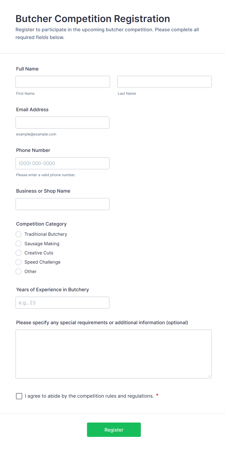 Contest registration forms are versatile tools that cater to a wide range of event types and organizational needs. Their adaptability allows organizers to solve common challenges associated with participant management, data collection, and communication. Here’s how these forms can be used in different scenarios: