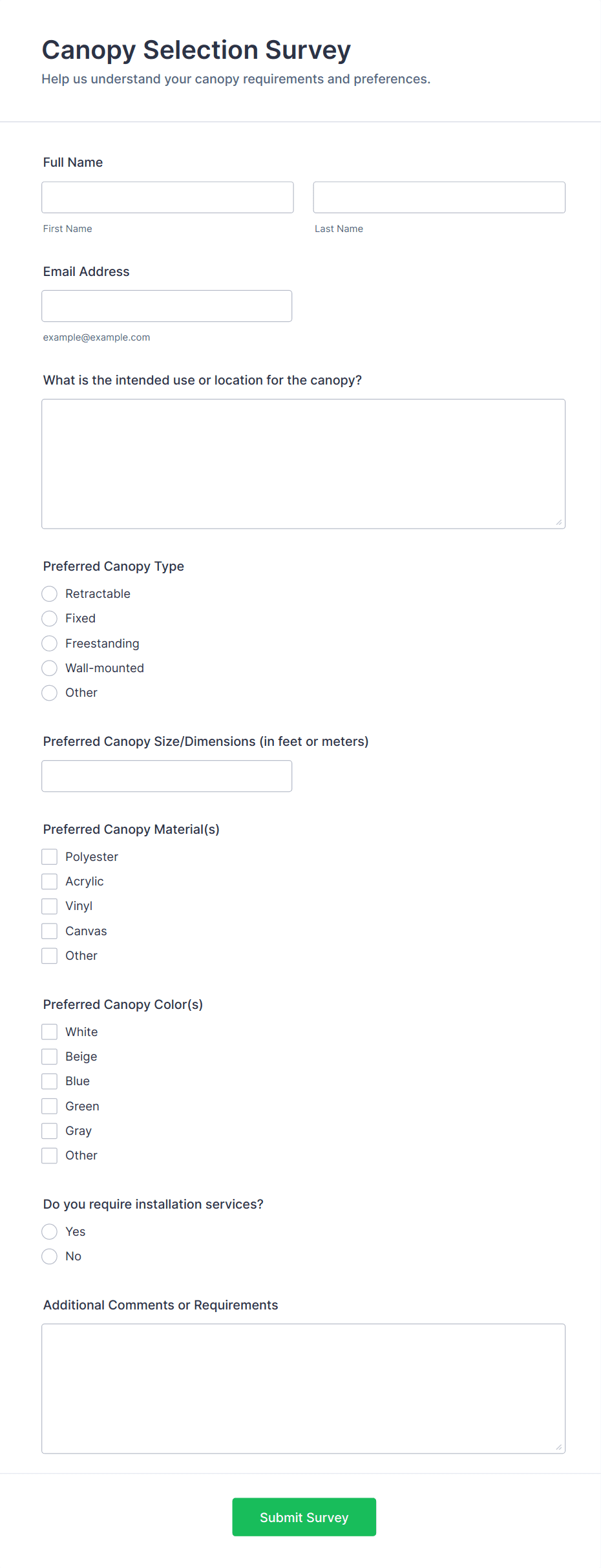 Survey templates are pre-designed forms that help individuals and organizations collect feedback, opinions, or data from a target audience. These templates are widely used for a variety of purposes, such as customer satisfaction surveys, employee engagement assessments, market research, event feedback, and academic studies. By providing a structured set of questions, survey templates streamline the process of gathering valuable insights, making it easier to analyze trends, measure satisfaction, and make informed decisions. Whether you’re a business owner, HR professional, educator, or researcher, survey templates offer a quick and effective way to reach your audience and collect actionable information.