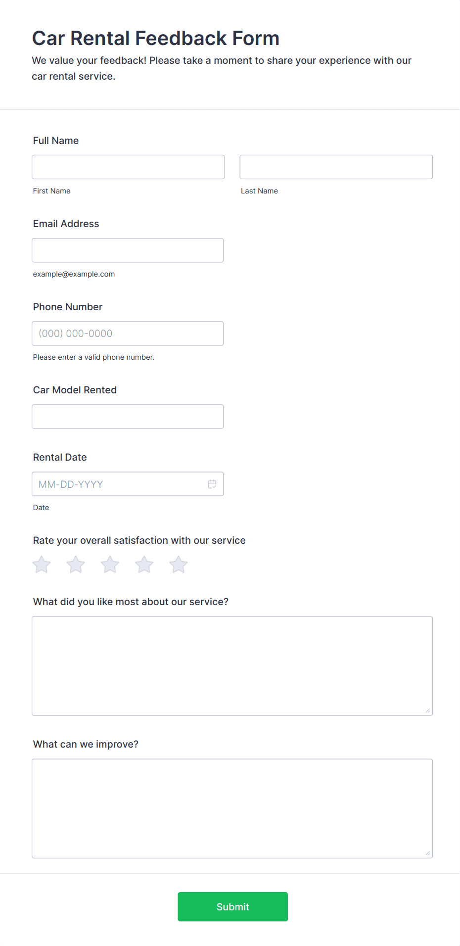 Feedback forms are versatile and can be tailored to fit a wide range of needs across different industries and scenarios. They help organizations identify strengths, uncover issues, and gather actionable insights. Here’s how feedback forms can be used, who might use them, and how their content can vary: