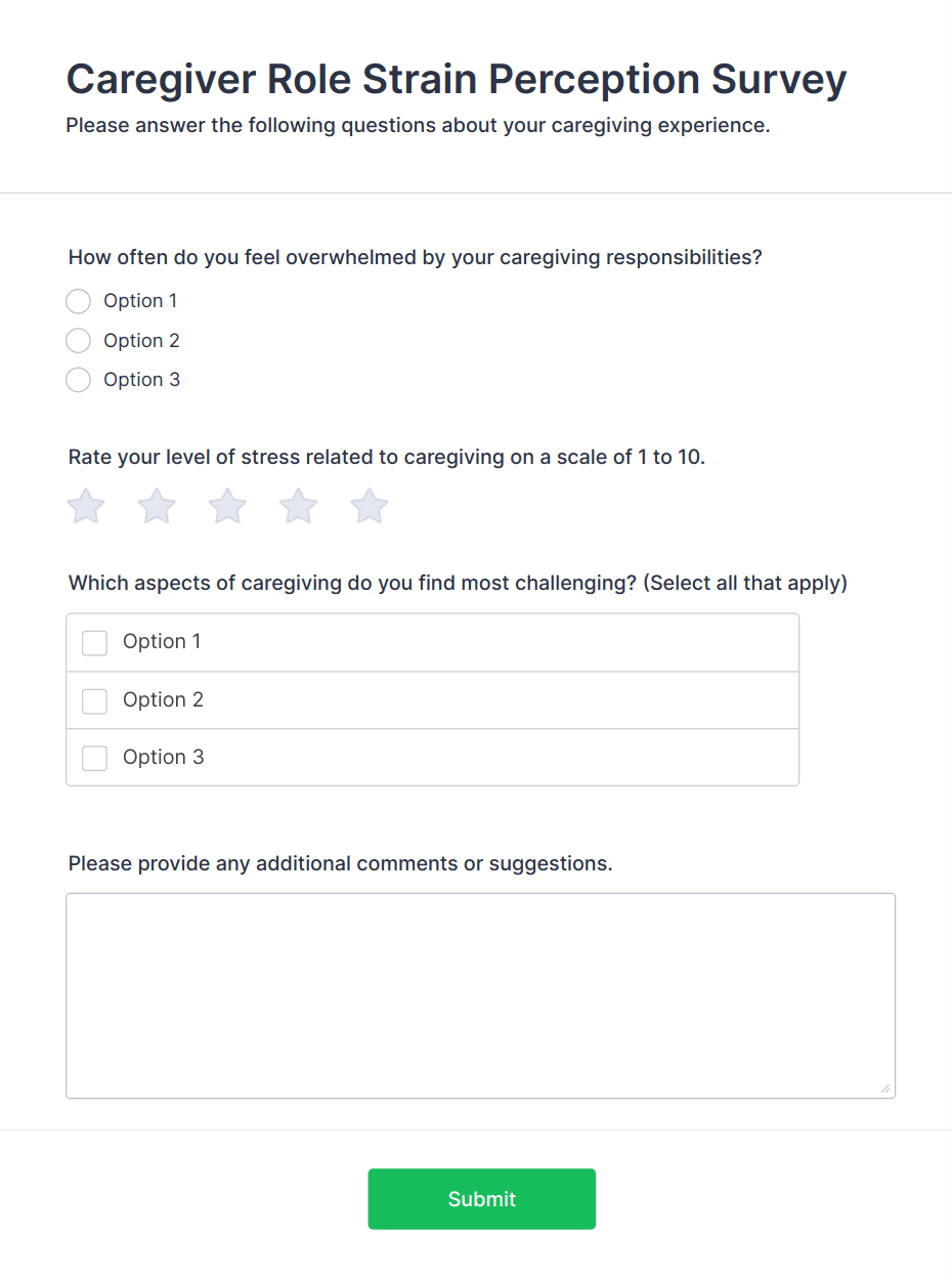 Healthcare surveys are specialized questionnaires designed to collect valuable information from patients, healthcare professionals, and other stakeholders within the medical field. These surveys can be used for a variety of purposes, such as assessing patient satisfaction, gathering feedback on healthcare services, monitoring public health trends, evaluating treatment outcomes, and conducting research studies. Healthcare organizations, clinics, hospitals, and research institutions rely on these surveys to improve patient care, streamline operations, and ensure compliance with industry standards.
