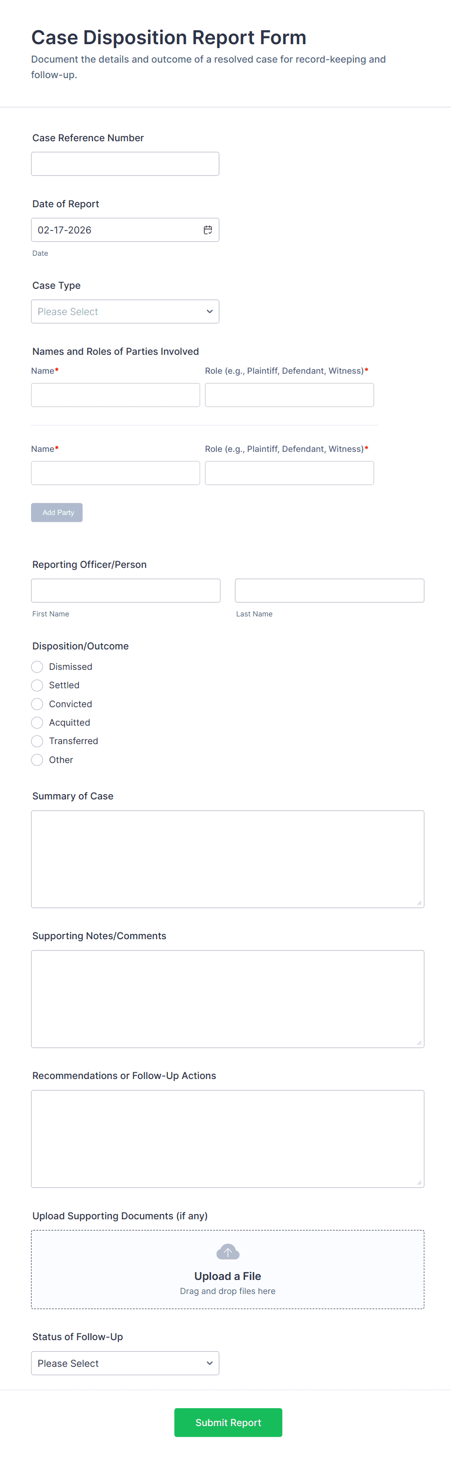 • For incident reports: Add fields for incident details, location, involved parties, and supporting evidence.