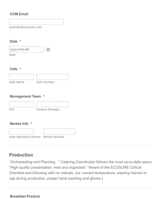 - Multiple choice or checkbox fields for compliance checks.