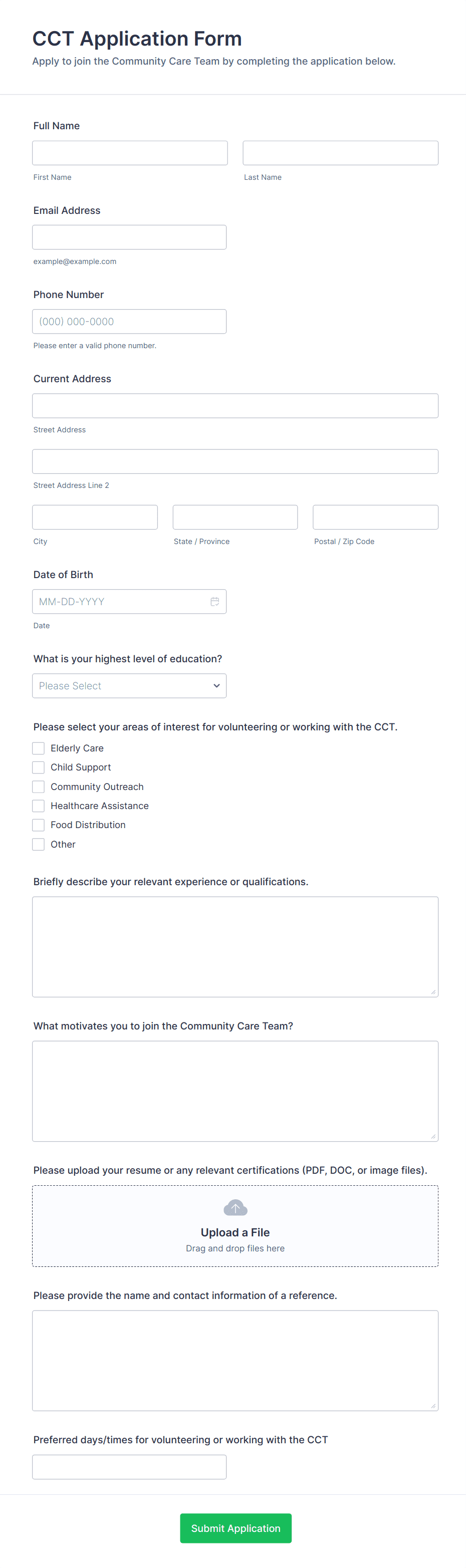 - For ongoing programs, forms might include detailed skills assessments, references, and background check consent.