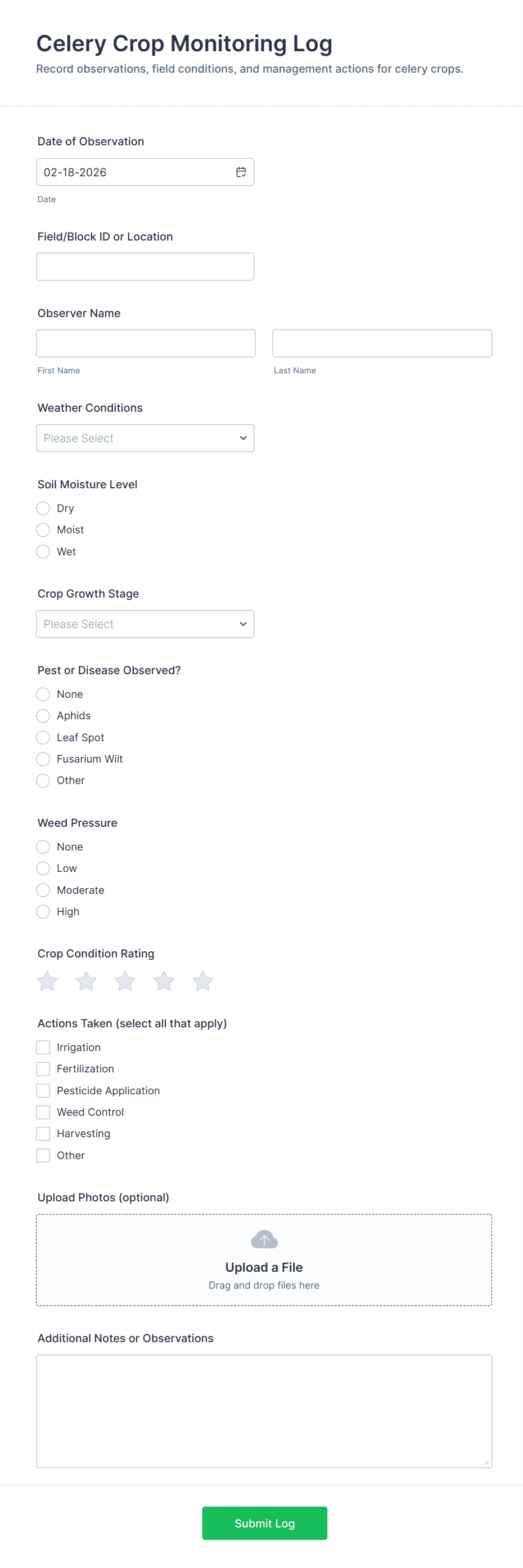 - Environmental Monitoring Forms: Include data entry for measurements, location fields, and observation notes.