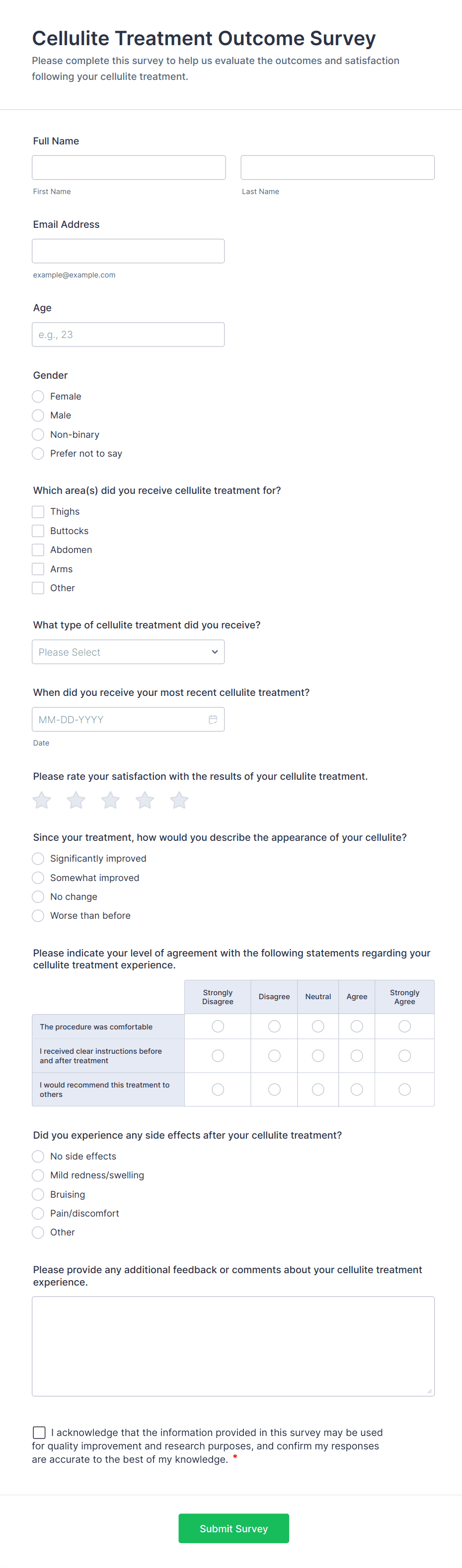• Ongoing satisfaction forms might focus on overall service quality, communication, and responsiveness