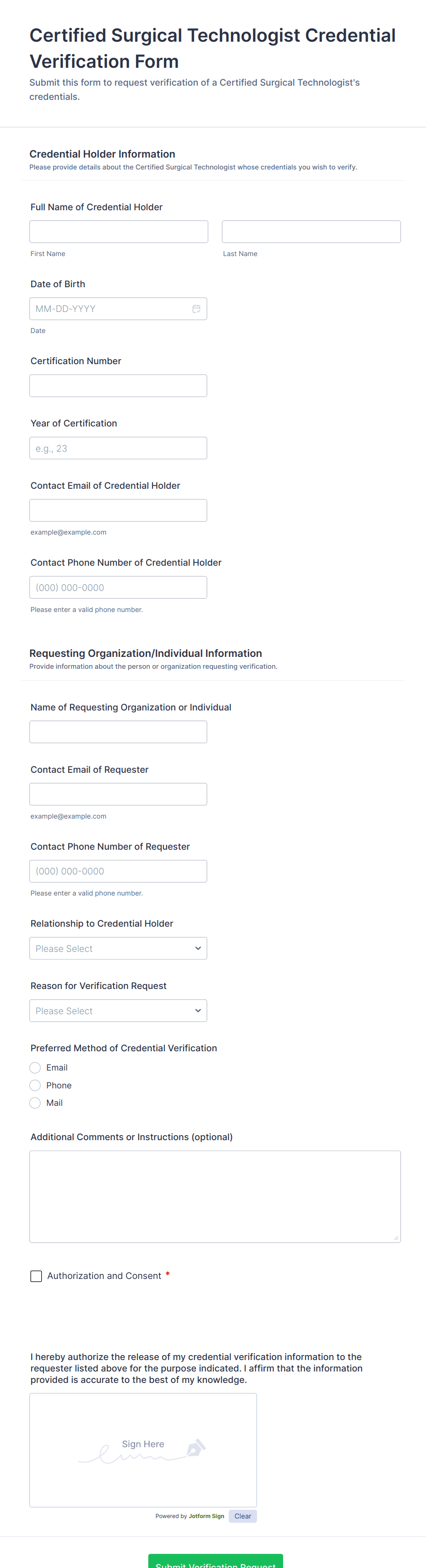 • Use dropdowns or multiple-choice fields to specify the type of verification (e.g., identity, employment, address).
