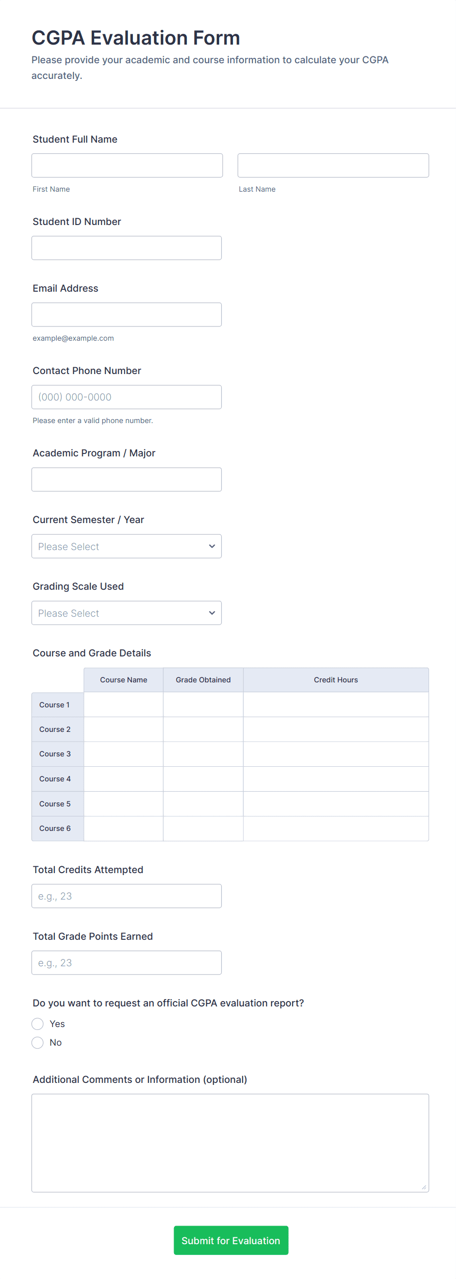 Yes. Forms can be tailored using custom fields and conditional logic to match different subjects, grading rubrics, and student levels.