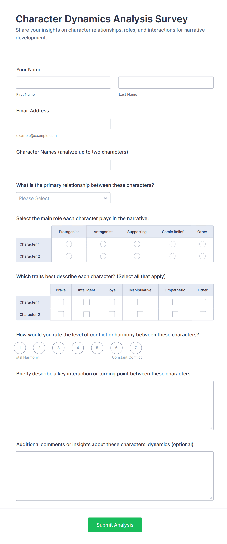 • For customer feedback, include satisfaction ratings and open-ended comment fields.