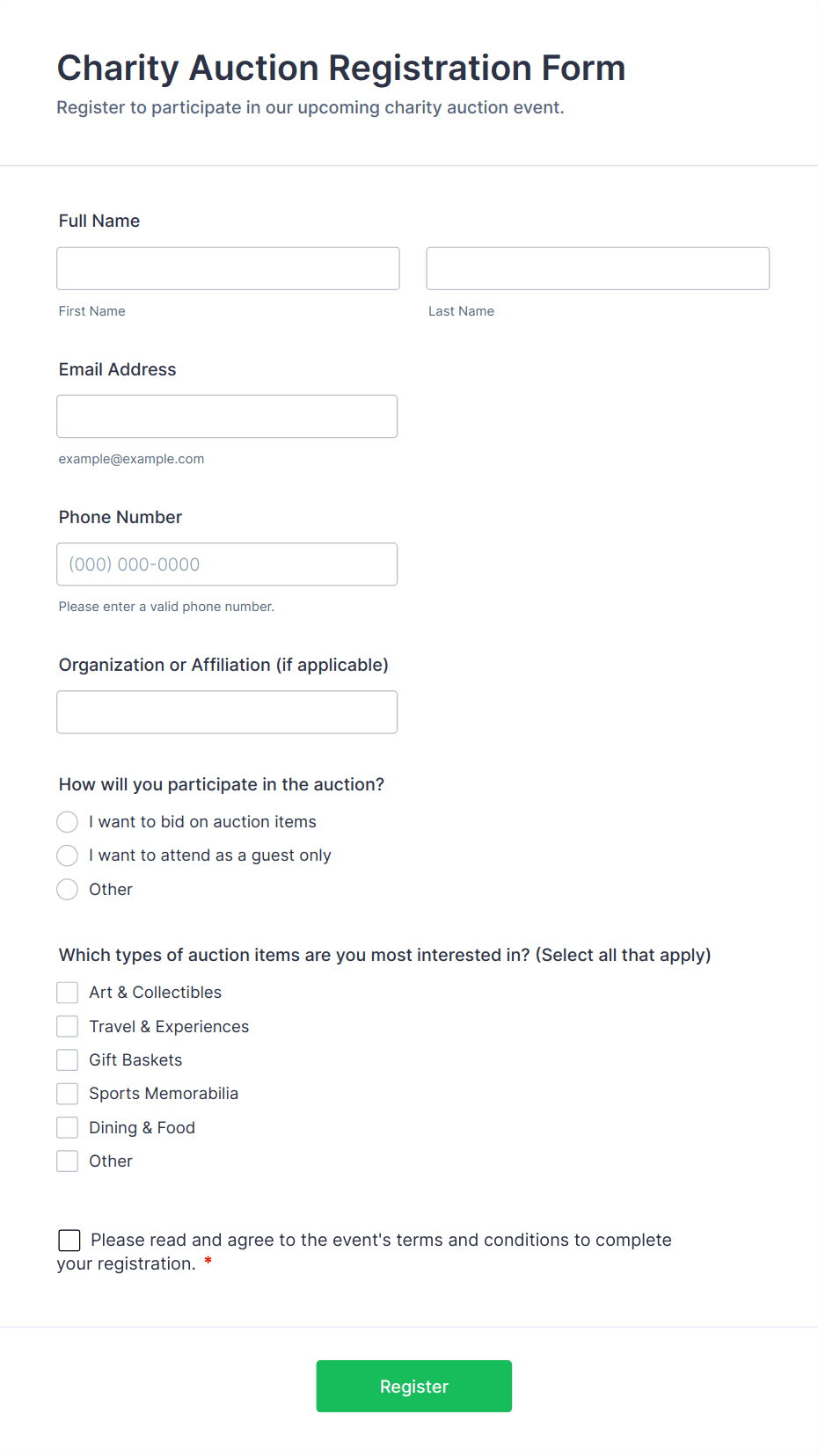 Fundraising Registration Form