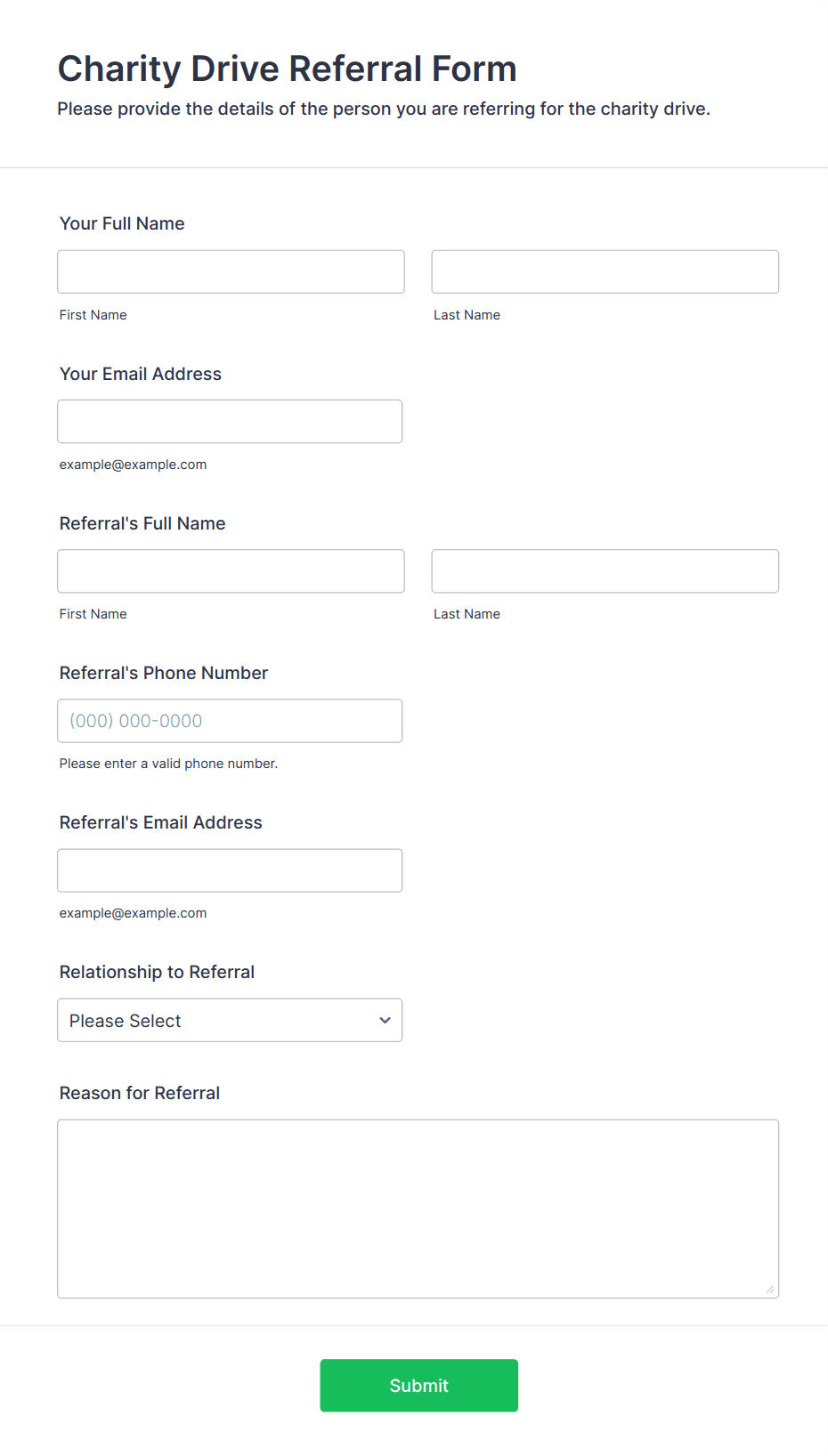 3. What information should be included in a charity donation form?