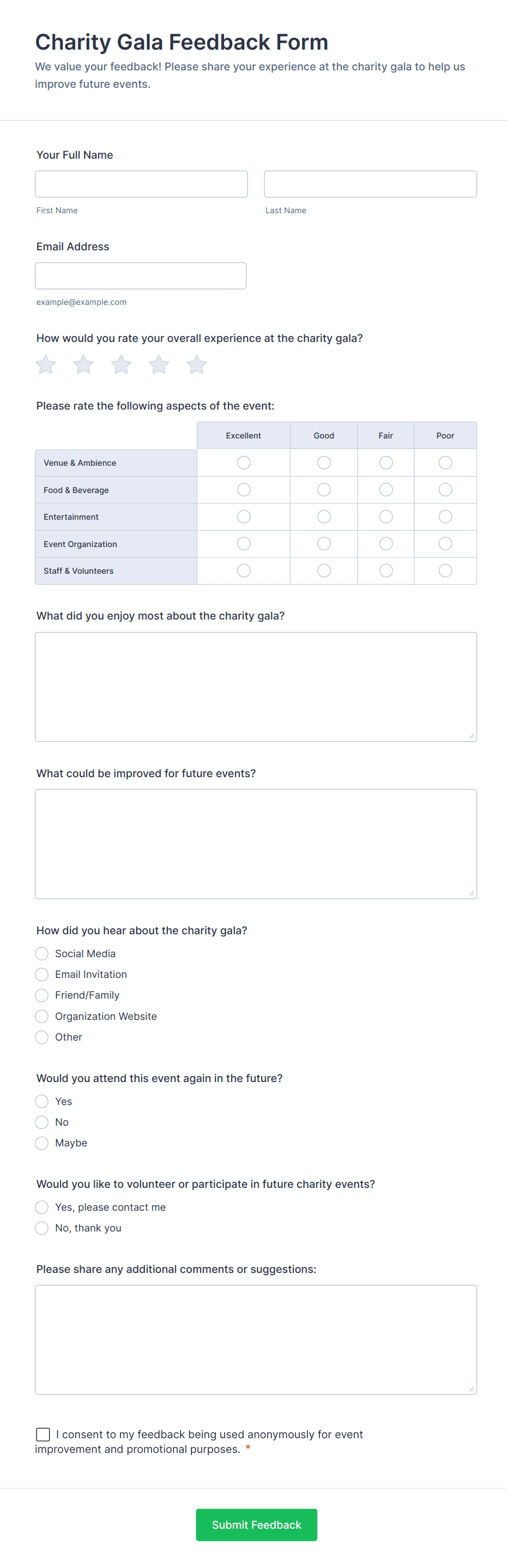 By following these steps, you can create a tailored Event Feedback Form that captures the information you need to continually improve your events and enhance attendee satisfaction.