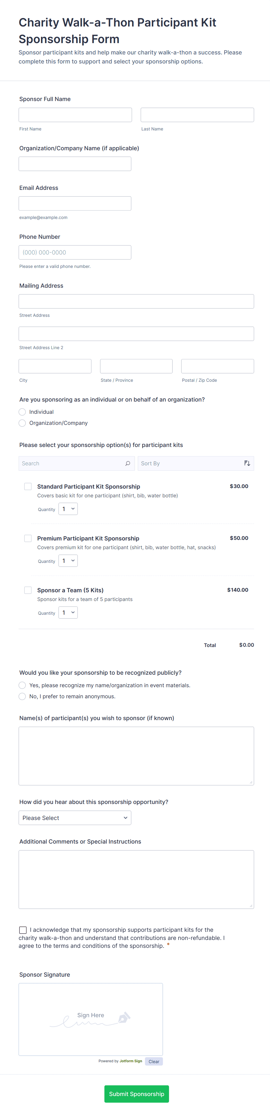 By following these steps, you can create a tailored sponsorship form that simplifies sponsor management, enhances donor experience, and supports your fundraising or partnership goals.