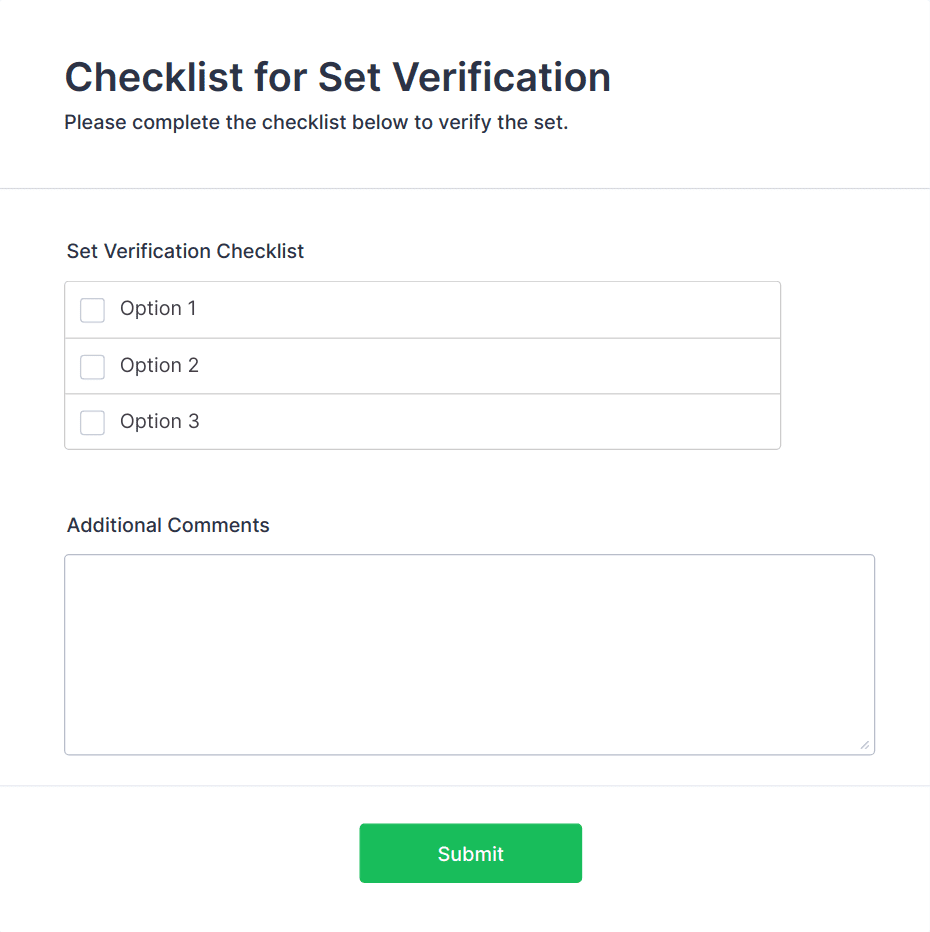 • For more complex checklists, add dropdowns, file upload fields (for attaching evidence or reports), or signature fields (for verification).