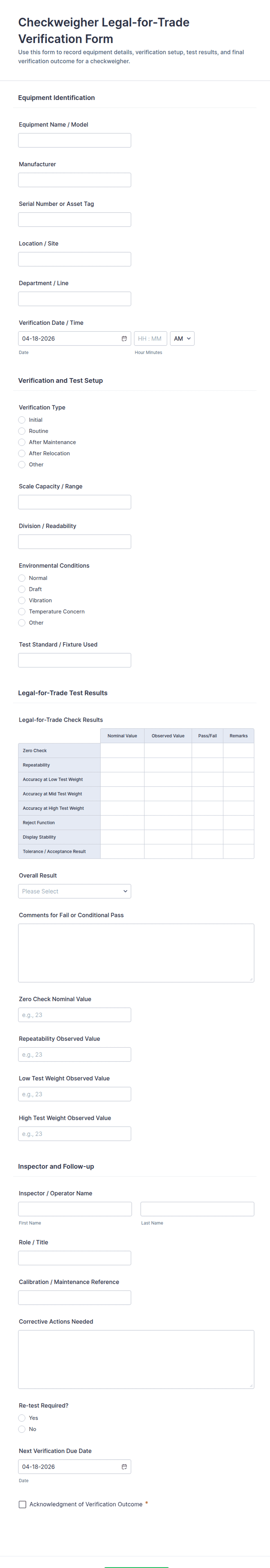 Verification forms are specialized digital tools designed to authenticate, validate, or confirm information provided by individuals or organizations. These forms are commonly used to verify identities, credentials, employment status, addresses, or other critical data points in a secure and efficient manner. Typical use cases include onboarding new employees, confirming student enrollment, validating customer identities for financial services, or ensuring the accuracy of submitted documents in compliance processes. By streamlining the verification process, these forms help organizations reduce fraud, maintain regulatory compliance, and build trust with their stakeholders.