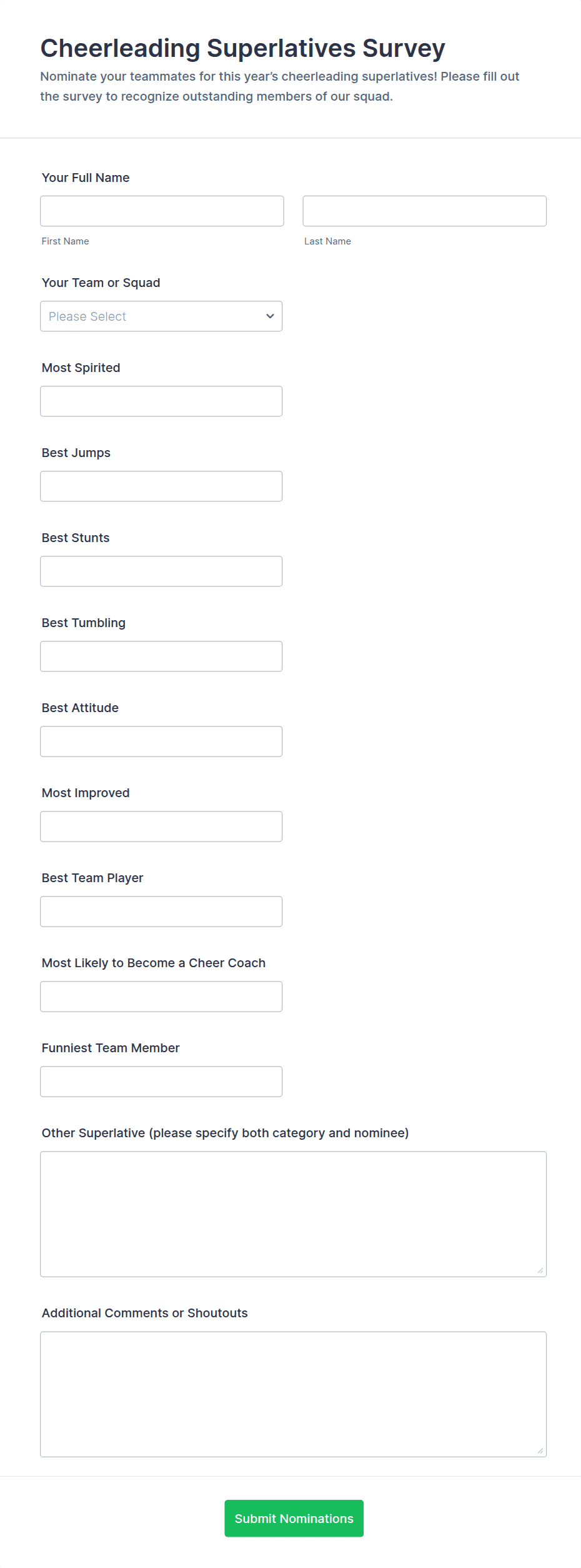 3. What information is typically collected on a cheerleading form?