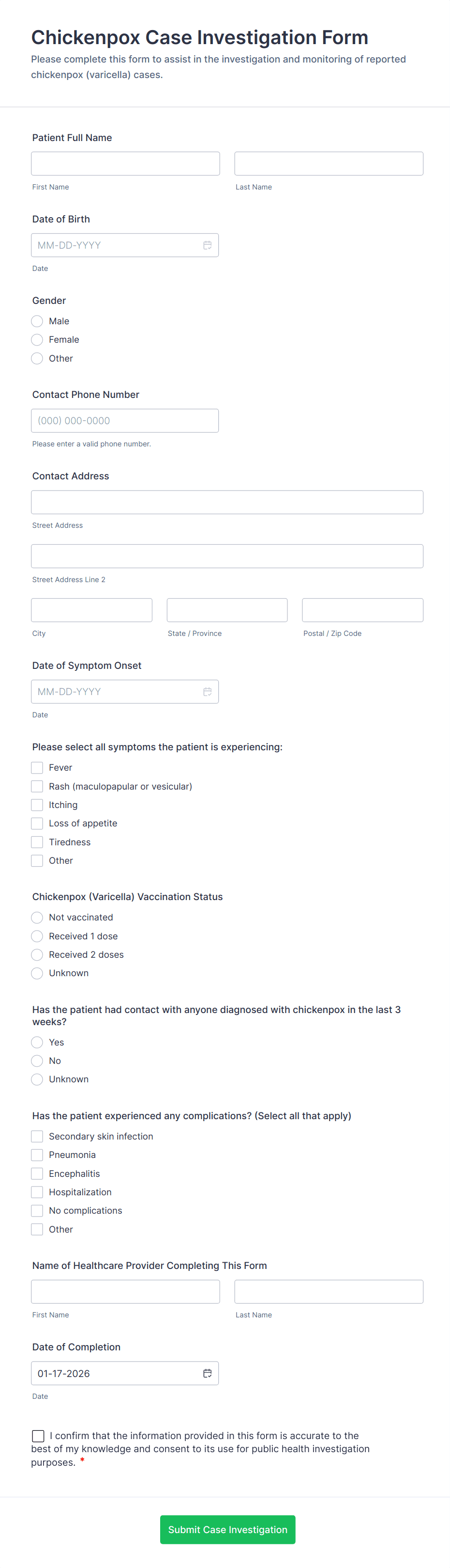 An infectious disease report form is an official form that is submitted to a healthcare provider to report the onset of an infectious disease.