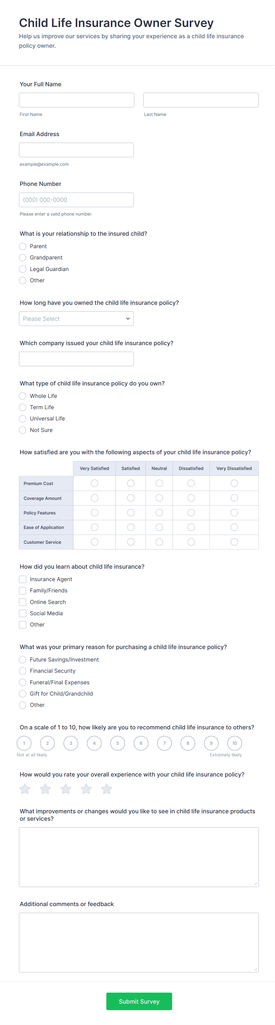 Life Insurance Questionnaire