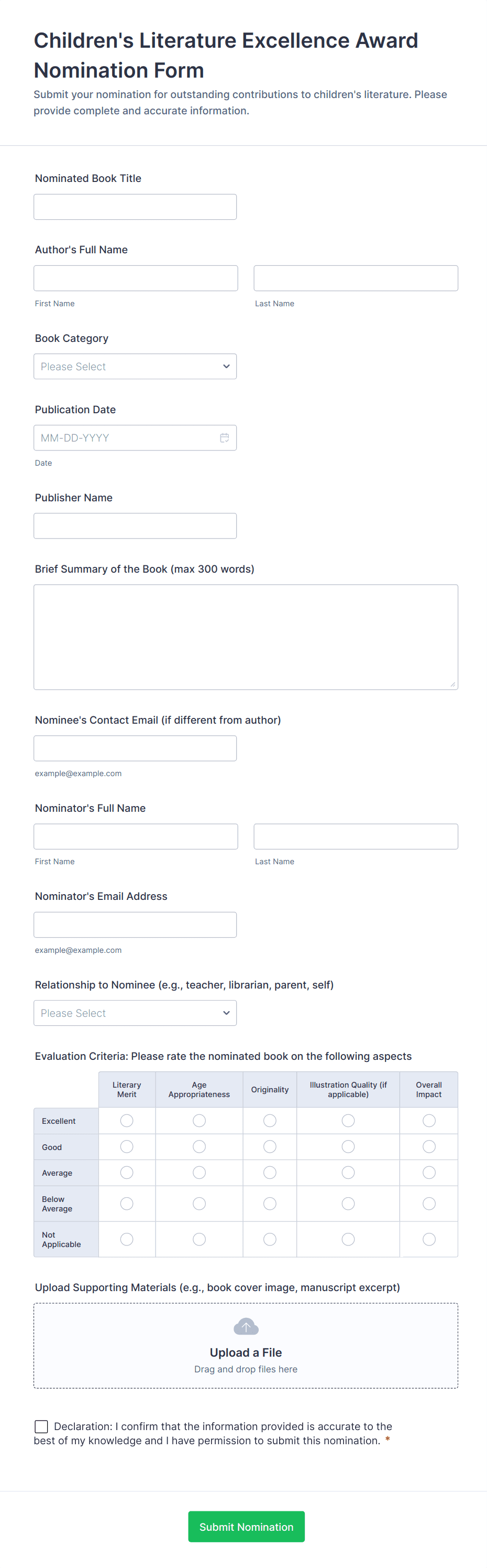 Collect and manage award reference letter requests with the Award Nomination Reference Letter Request Form, ideal for committees and organizations that need organized data collection, file uploads, and clear deadlines in one place.
