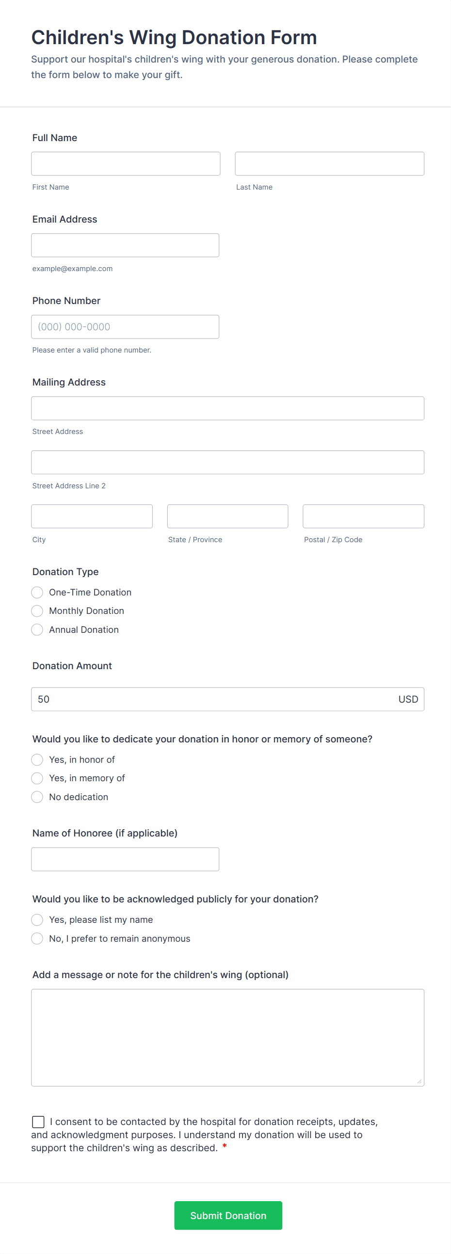 • Memorial or Tribute Donation Forms: Allow donors to dedicate their gift in honor or memory of someone.